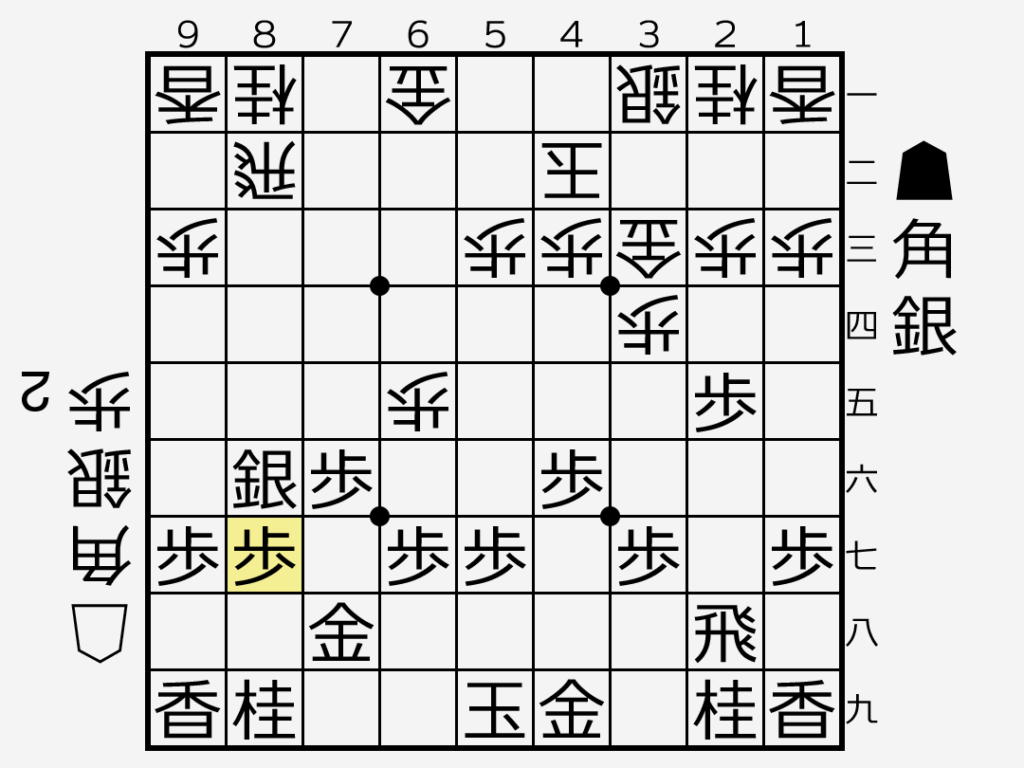 これには、☗同歩☖同銀☗同銀☖同飛☗8七歩☖8二飛と自然に指し進めて問題ありません。